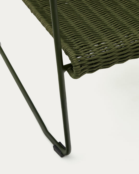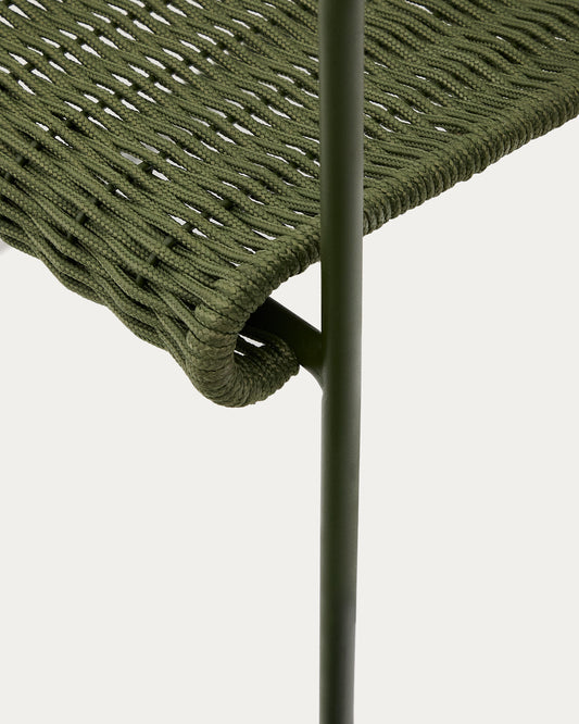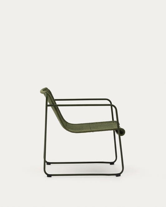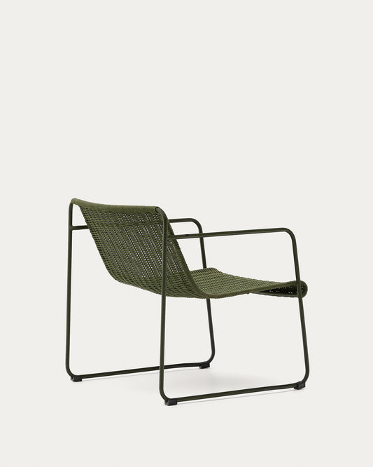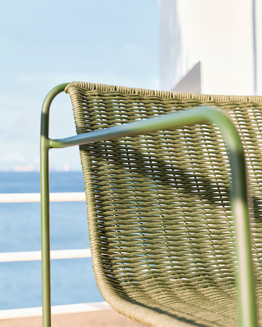 - Fotelja sa sedištem i naslonom od ručno tkanog zelenog užeta otpornog na UV zračenje.