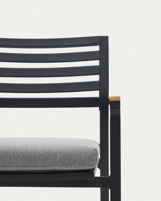 Bona aluminijumska baštenska stolica koja se može složiti sa crnom završnom obradom i naslonima za ruke od punog tikovinog drveta