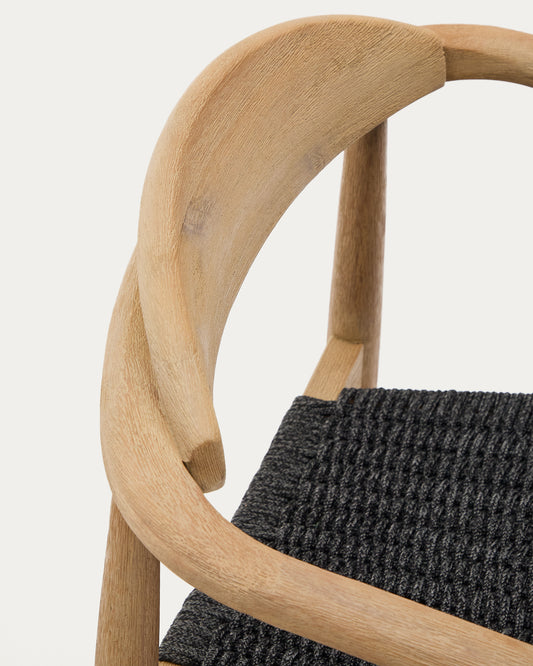 Nina stolica za slaganje od punog bagremovog drveta i sedište od crnog užeta FSC 100%