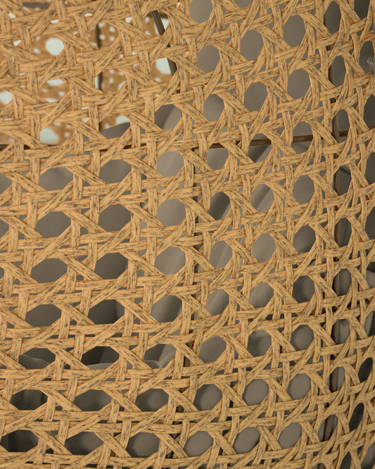 - Viseća stolica od poliratana, ručno tkana u bečkom tkanju.