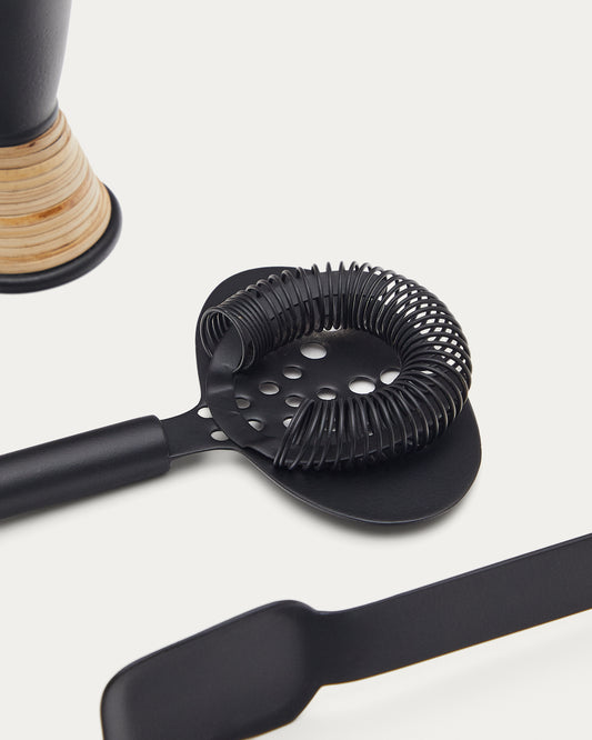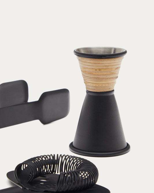 Shai set od crnog stainless čelika i ratana cocktail pribora