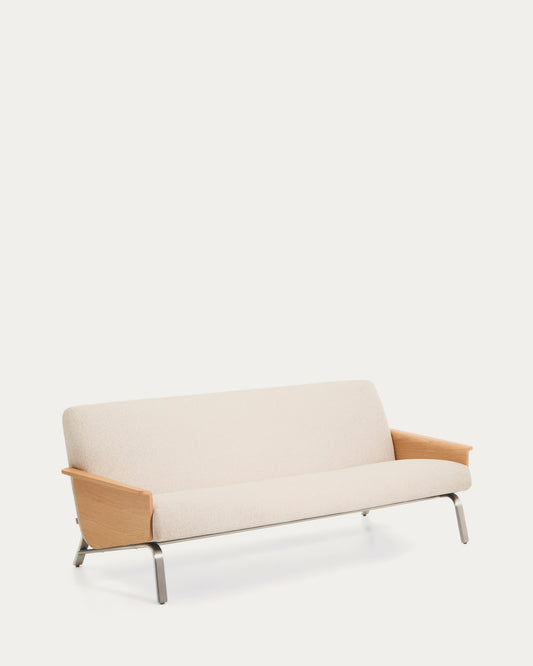 Amsen bež ženil trosed sofa od hrastove šperploče sa nogama od brušenog nerđajućeg čelika 205cm