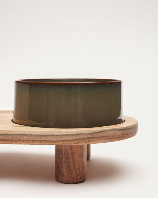Dumbi set od 2 činije za hranu i vodu za kućne ljubimce sa nosačem u beloj i braon boji Ø 14 cm FSC 100%