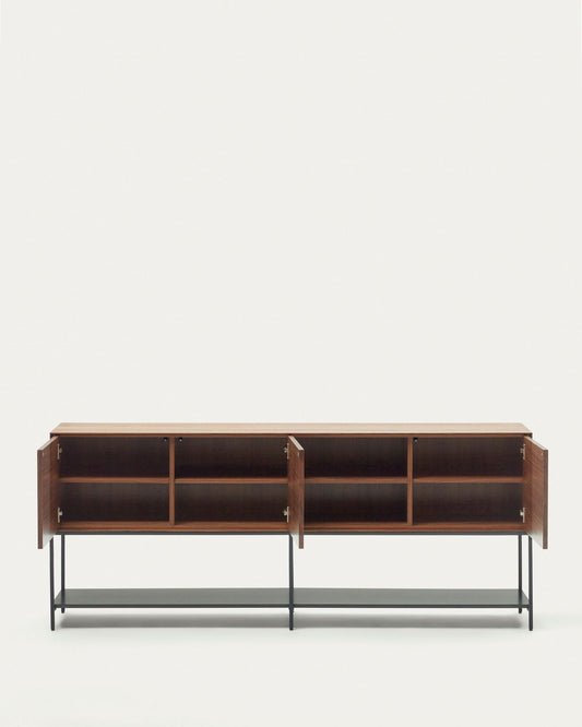Vedrana komoda sa 3 vrata od orahovog furnira sa čeličnim nogama, 195 x 80 cm