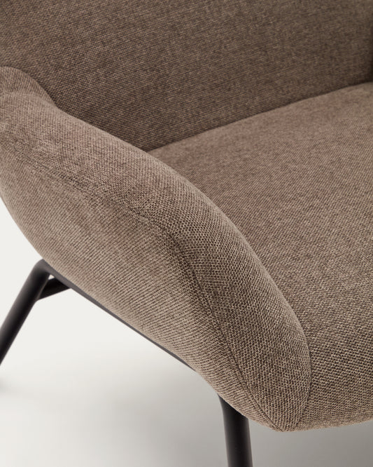Belina šenil fotelja u svetlo braon i čeliku sa crnom završnom obradom FSC 100%