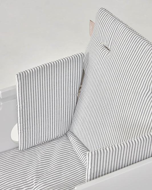100% organic cotton (GOtS) Nuun high chair cushion in blue stripes