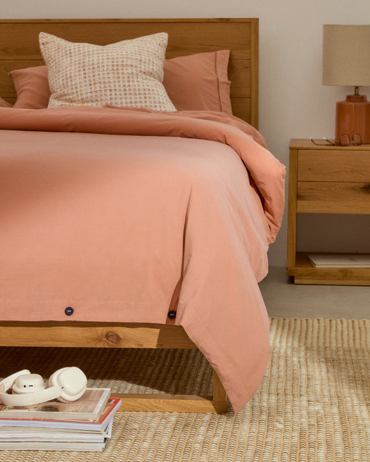 Alguema oak veneer bed with natural finish for mattress 180 x 200 cm