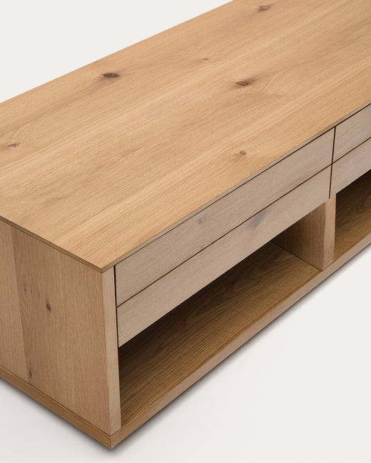 Alguema coffee table with 2 drawers in oak veneer with natural finish 140 x 60 cm
