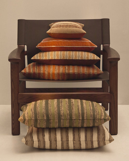 Amela plush pillow case with a beige tie stripe 50 x 30 cm