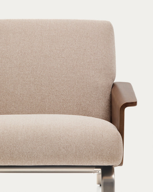 Amsen light brown walnut plywood two-seater with brushed stainless steel legs 165cm