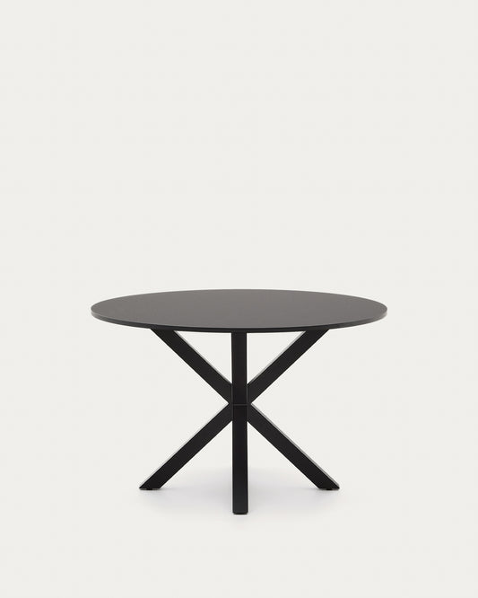 Argo round table made of black lacquered plywood with steel legs with black finish Ø 120 cm
