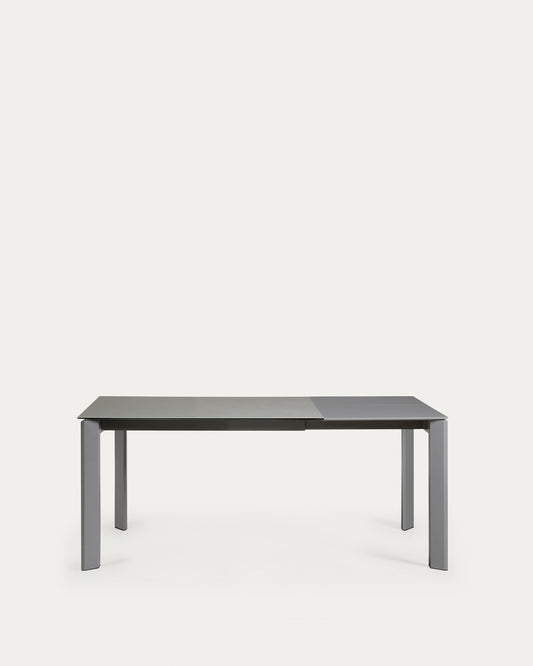 Ceramic table that can be extended along the axis in Hydra Plomo finish, anthracite steel legs 120 (180) cm