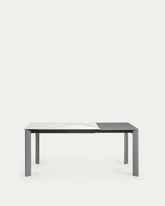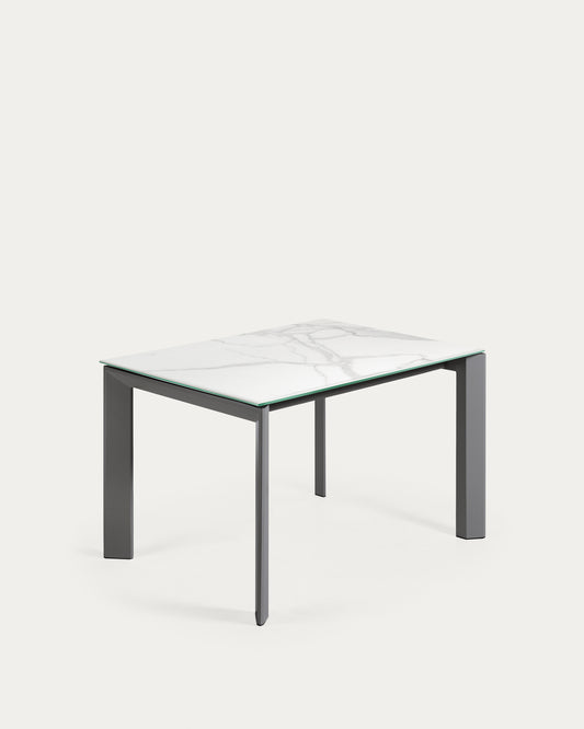 Axis porcelain extendable table with Kalos Blanco finish and dark gray legs, 120 (180) cm