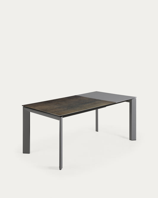 Axis porcelain pull-out table in Iron Moss color with anthracite steel legs 120 (180) cm