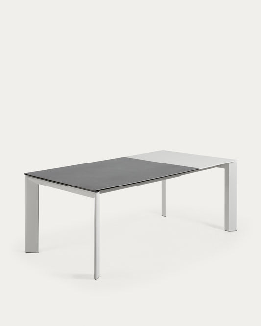 Axis porcelain pull-out table in Volcano Rock finish with gray legs 140 (200) cm