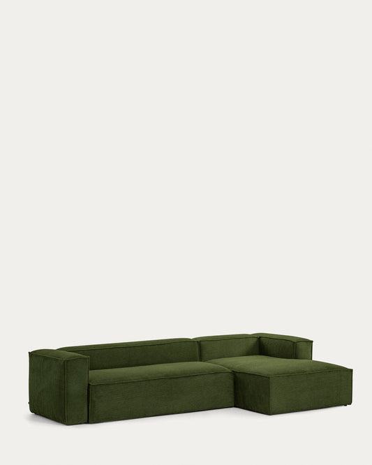 4 Seater Block Sofa with Right Side Chaise Lounge in Green Wide Corduroy, 330cm FSC Mix Credit