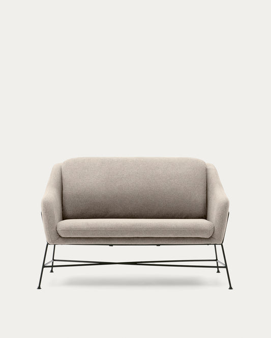 Brida two-seater in beige and steel legs with black finish, 128 cm