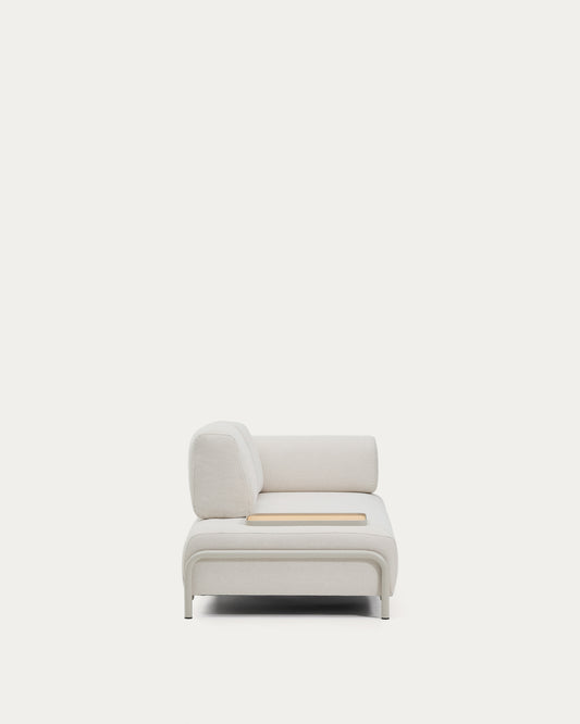 - Two-seater sofa with small oak table and beige steel frame with powder coating and micro-textured finish.
