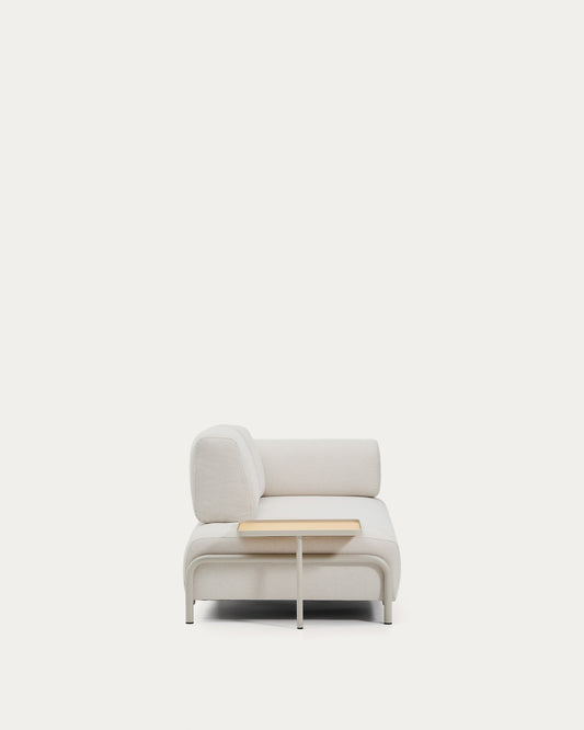 • Two-seater sofa with large oak table top and beige steel frame with powder coating and micro-textured finish.