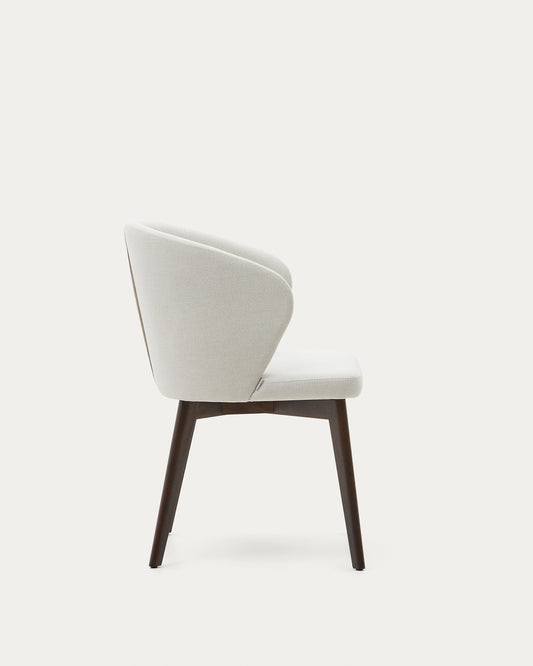 Darice chair made of beige chenille and solid beech wood in walnut color FSC 100%