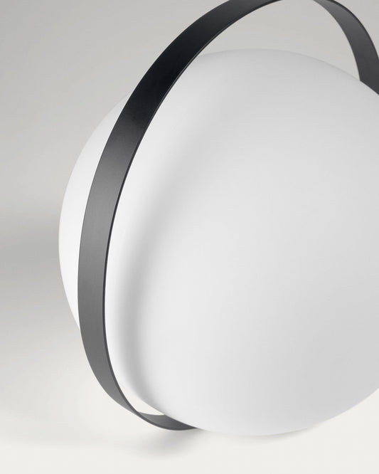 - Portable plastic lamp with black steel flex.