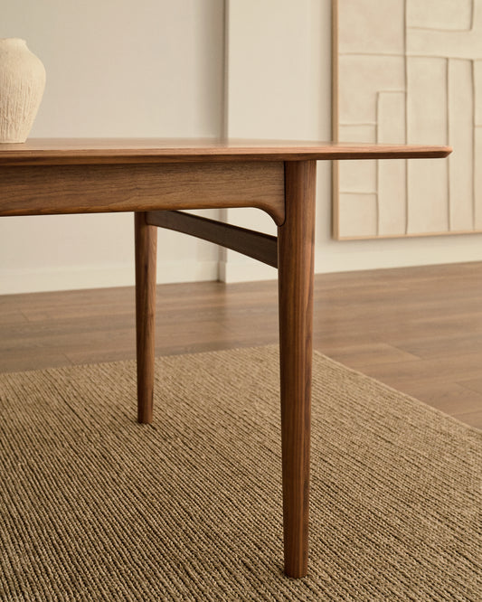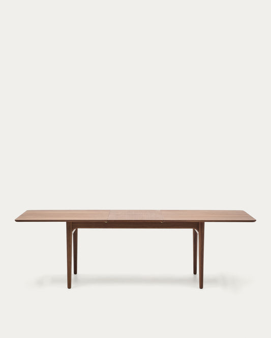 - Extension table with veneer and solid walnut legs with a natural finish.