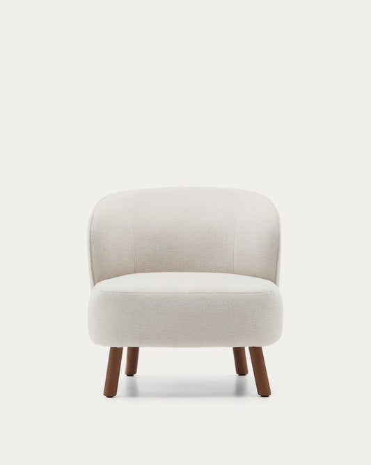 Fotelja Ulit od chenille tkanine bež sa nogarima od masivnog jasena, završna obrada u boji oraha