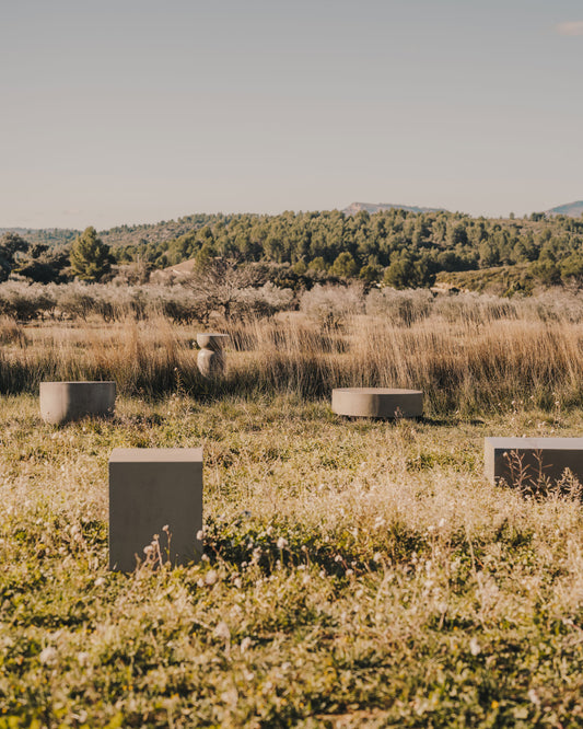 - Cement coffee table.