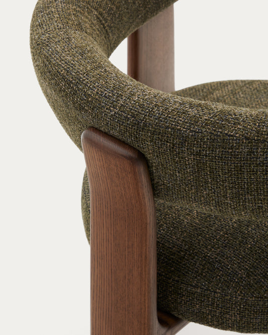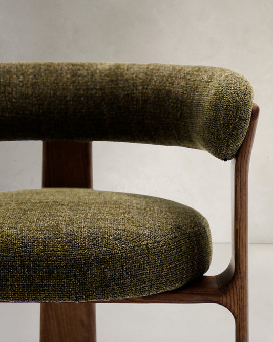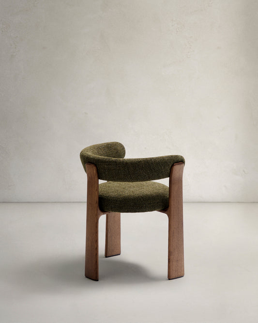 Granite chair with 3 legs in green chenille and solid ash wood in walnut finish FSC 100%