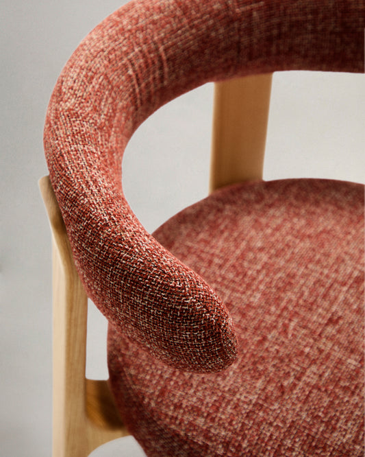 Granite chair in terracotta chenille color and solid ash wood in natural finish FSC 100%
