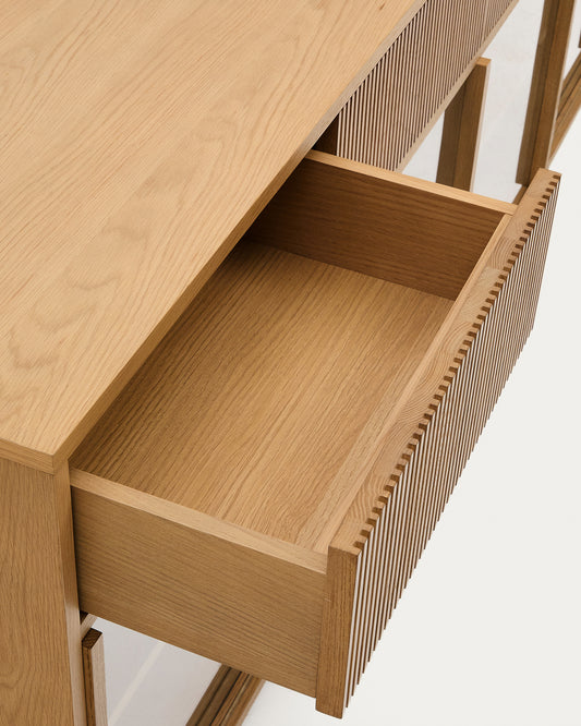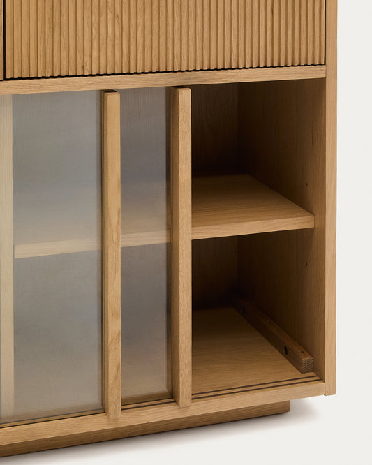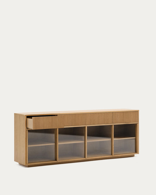 Helvine chest of drawers 4 doors and 4 drawers oak veneer and tempered glass, 200 x 80 cm FSC 100%