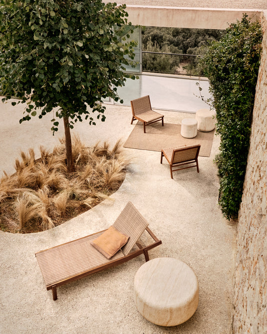 - A chaise longue with a solid acacia wood structure, so each piece will have its own tones and grain.
