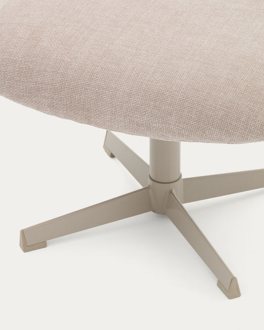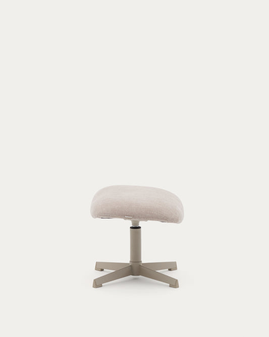 - Upholstered rotating footrest, upholstered in structured recycled polyester fabric, with gray metal construction and matte microtextured finish.