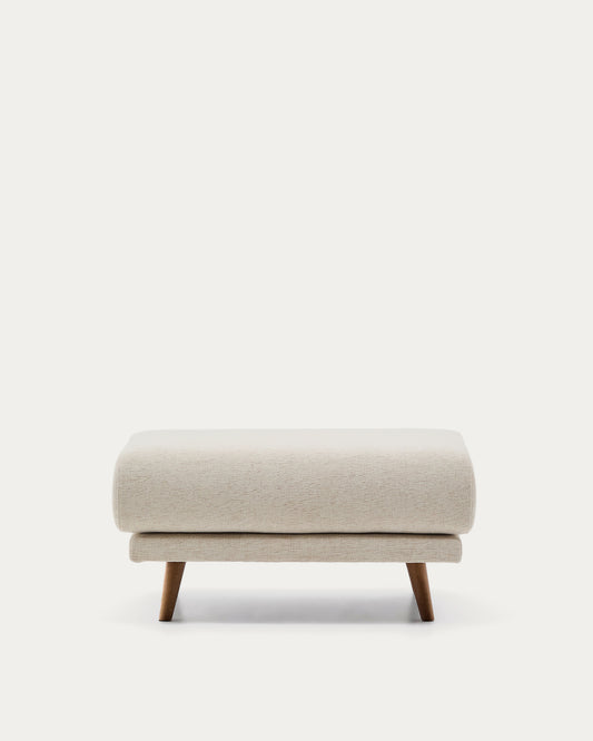 Karin stools in beige chenille and solid beech wood legs in walnut finish, 90 x 70 cm