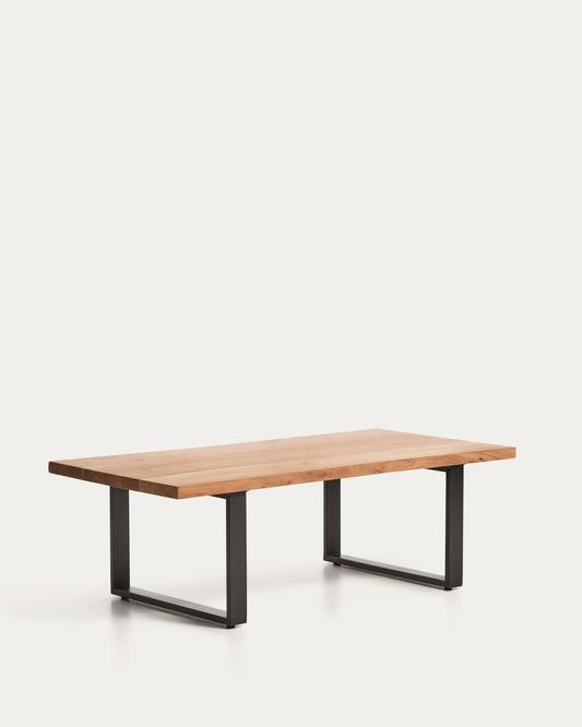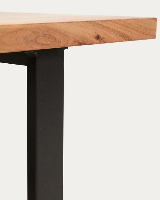 Klub sto Uxue od masivnog akacija drveta i nogu od crnog čelika 130 x 64 cm