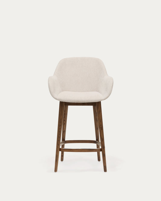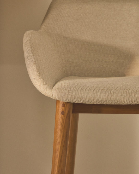 Konna stool in beige and solid ash wood in a dark finish, 65 cm