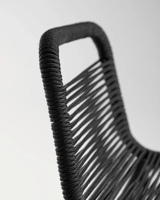 Lambton stackable chair in black rope and black steel, 62 cm