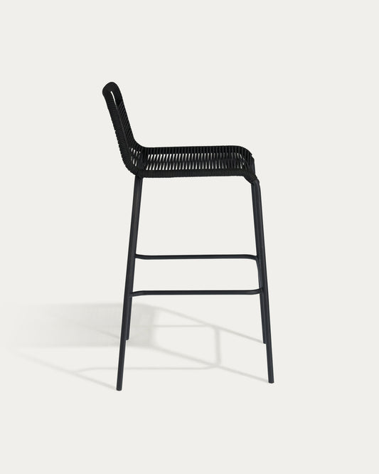 Lambton stackable chair in black rope and black steel, 74 cm