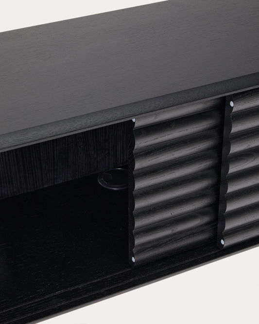 Lenon TV cabinet, 2 doors in solid wood and black oak veneer 200x57 cm FSC Mix Credit