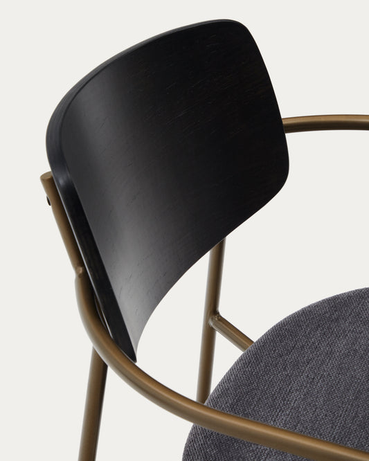 Maureen stacking chair in poplar plywood with dark tone finish and metal with brass finish, 100% FSC