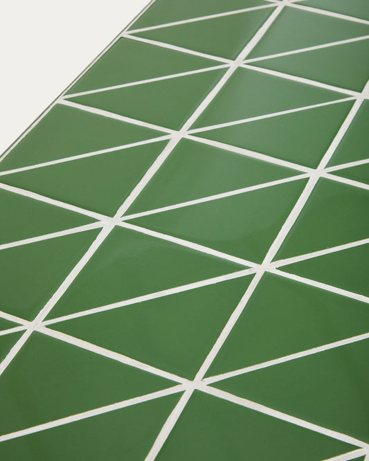 Maura side table made of green galvanized steel structure and green tiles 122 x 61 cm