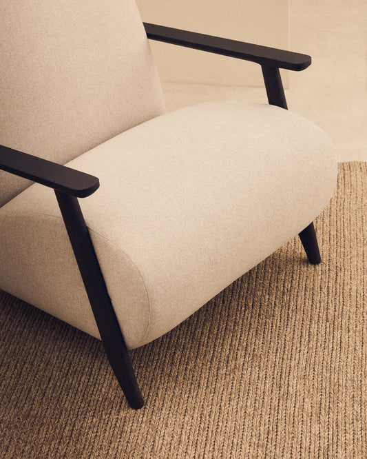 Meghan armchair in pearl chenille and with solid beech wood in a wenge finish FSC Mix Credit