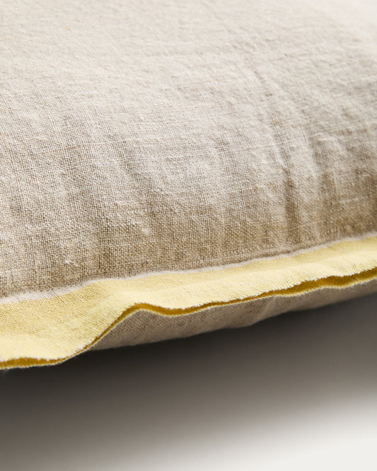 Disea linen cushion cover, beige with yellow detail, 45 x 45 cm