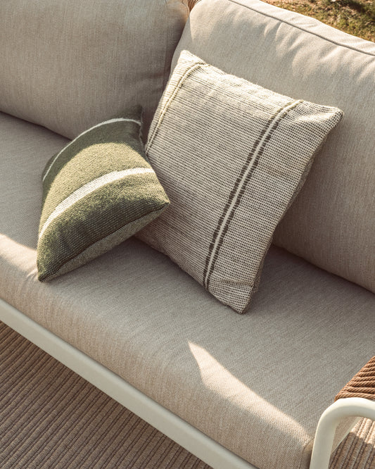 - Cushion cover made of 100% PET fibers, a material obtained from recycled plastic bottles.