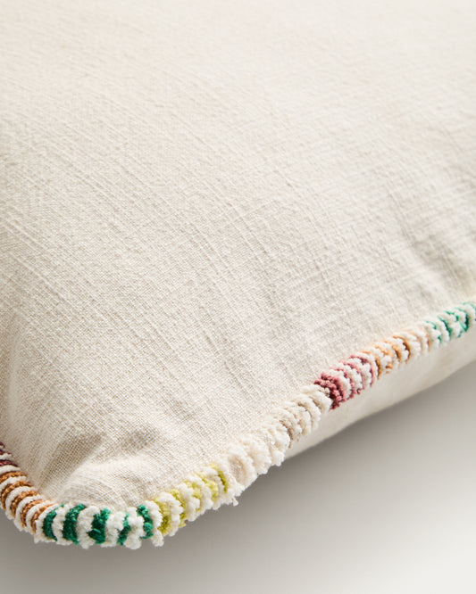 Enari cushion cover in raw cotton with multi-colored contrasting border 50 x 50 cm