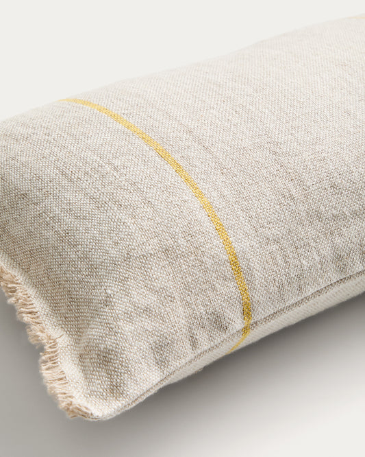 Lidore linen cushion cover, beige with contrasting yellow stripes, 30 x 50 cm