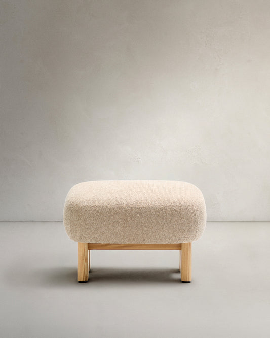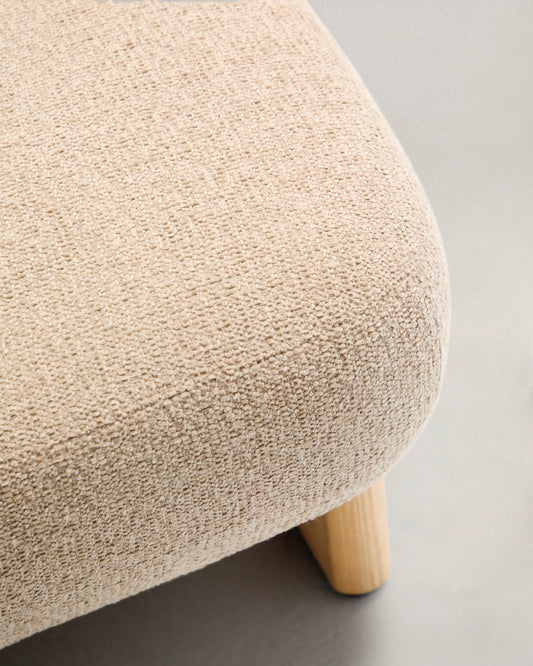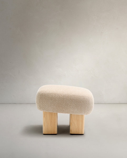 No Beige Chenille Stool with Solid Ash Legs Natural Finish 65x55.4cm FSC 100%