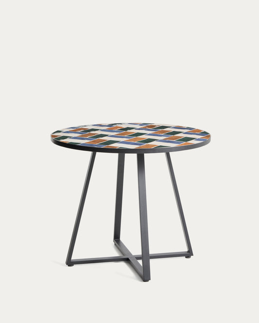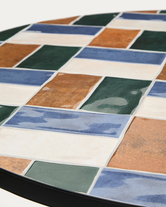 Tella round table made of graphite galvanized steel and multicolored tiles Ø90 cm