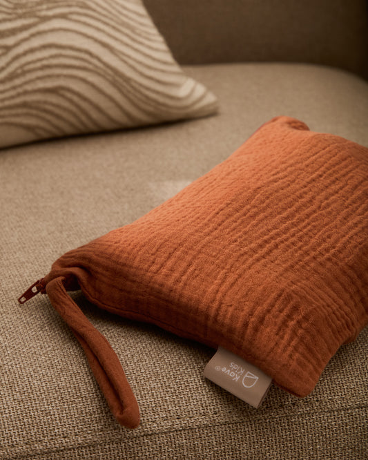 - toiletry bag made of 100% cotton muslin in terracotta.