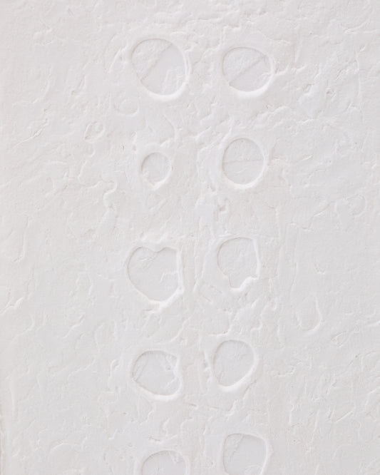 Olvin abstract painting on white recycled paper with handmade reliefs 44 x 94 cm